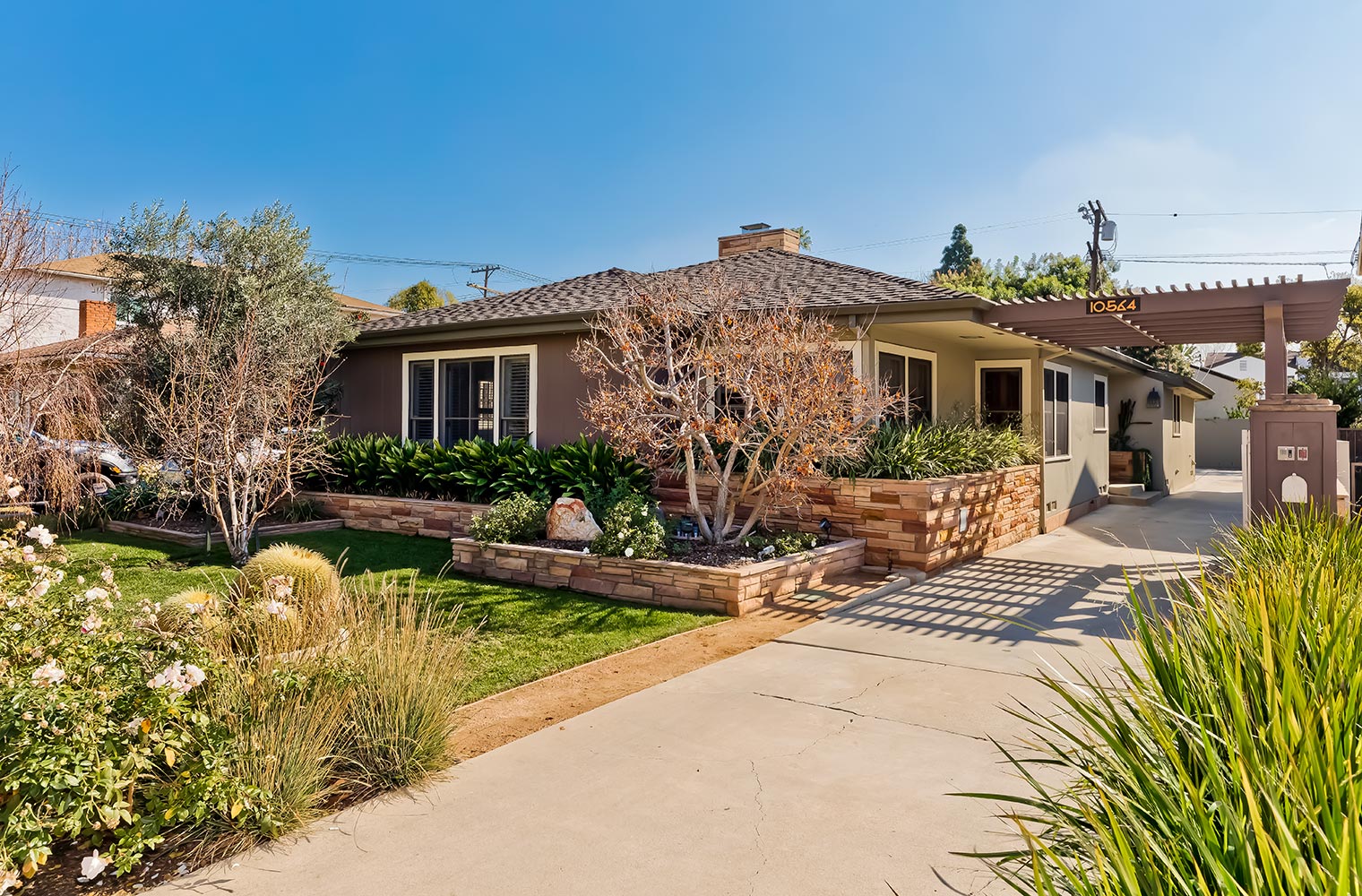 Meticulously maintained mid-century home in prime Westwood location. This pristine 3 bedroom & 2 bath home has crown moldings, a stone fireplace with raised hearth, limestone floors and a low maintenance backyard. The kitchen with breakfast area has been updated with marble countertops, a Thermador Professional stainless steel convection oven & hood, Bosch dishwasher and a built-in microwave. The spacious master suite has a picture window to the front yard and an updated bath with separate tub and shower. One of the bedrooms is being used as an office and includes built in bookcases. The rear patio is covered by a wood trellis. The detached two car garage has a bonus room with sink and washer/dryer and the driveway is secured by an electric gate. The home has central heat & air and updated 200 amp electrical. Also, some furnishings may be available.